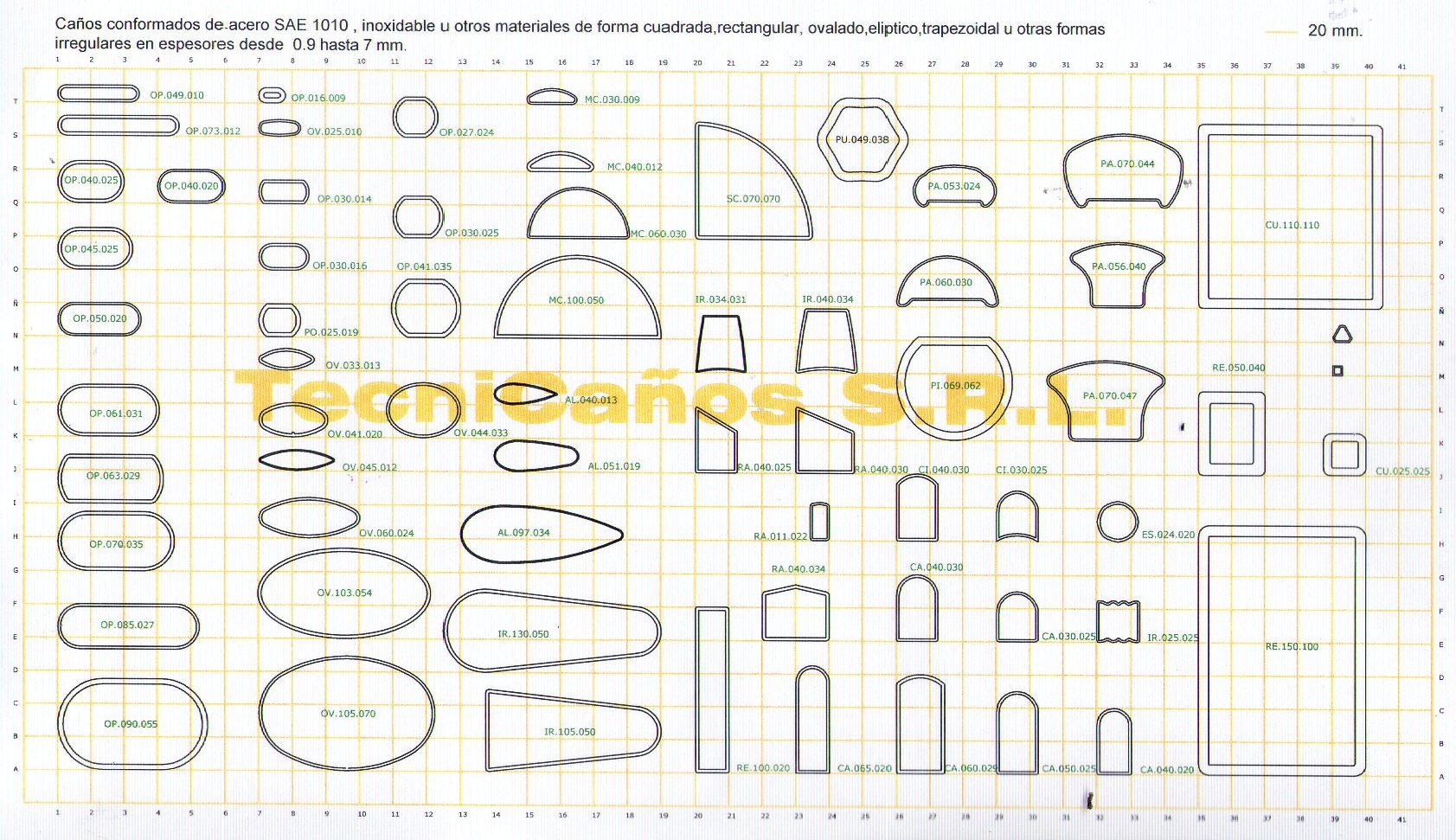 Con este gráfico podrá tener una idea de las medidas y formas que en la actualidad proveemos a gran cantidad de clientes, caños conformados, los cuales fabricamos a partir de caños standard, por lo que mantienen la mismas propiedades, metalurgicas y dimensionales.